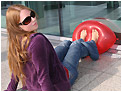 playing around with a large yellow balloon and finally